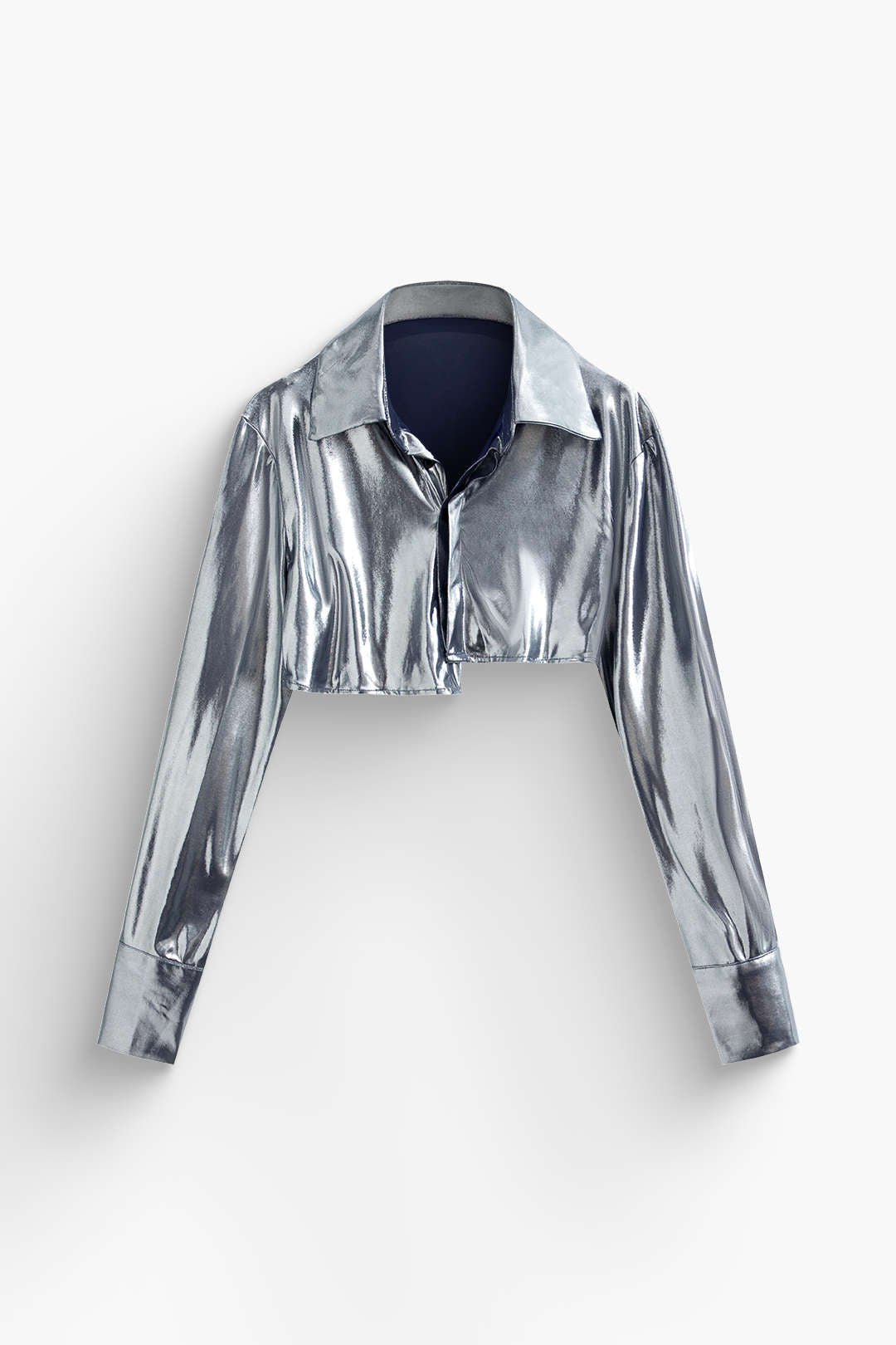 Indulge in the allure of Metallic Collar Button Crop Shirt, a captivating piece exclusively for you. This shirt, adorned with a metallic collar, exudes chic radiance, elevating your holiday wardrobe. The crop design adds a contemporary flair, while the button detailing infuses sophistication. Perfect for festive gatherings and celebrations, this shirt effortlessly complements your style.