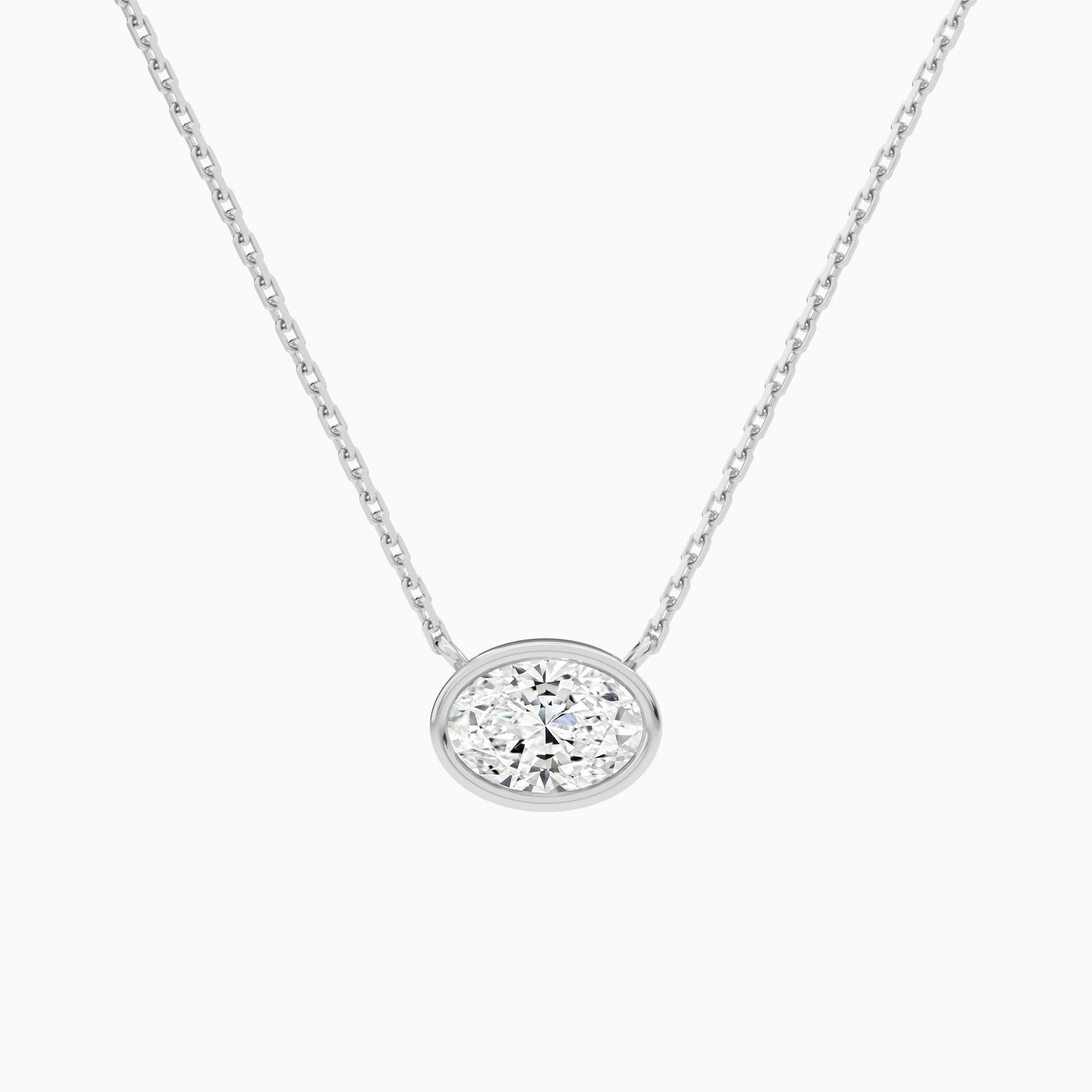 This necklace features a single diamond set in a smooth frame, hanging from a fine chain. The shape feels clean and modern, while the diamond adds a soft shine.